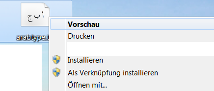 Schriftdatei in einem anderen Ordner mit der rechten Maustaste